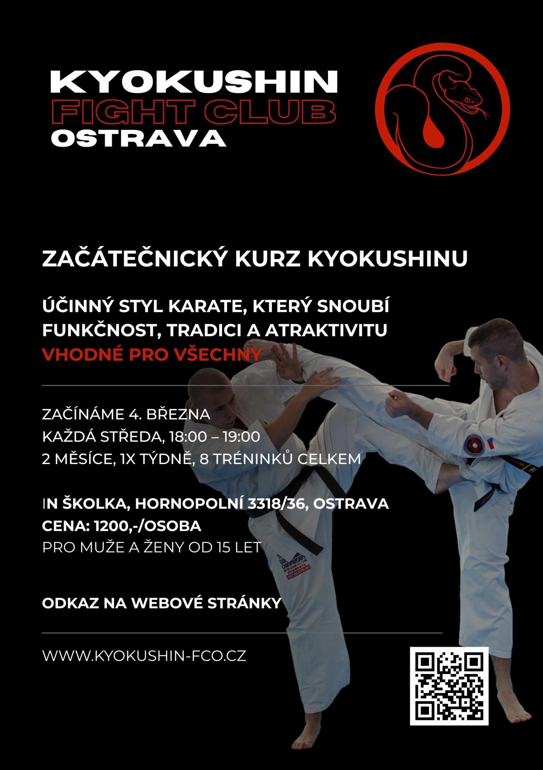 - Kyokushin není klasické „karate z filmu“. Je to plnokontaktní styl, který staví na síle, disciplíně a respektu k tradici japonských bojových umění. Zároveň je ale přehledný, systematický a ideální i pro ty, kteří nemají žádné předchozí zkušenosti.